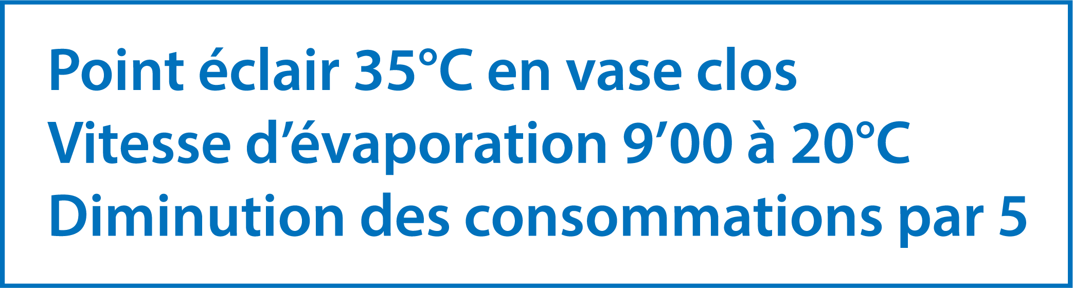 Il est facilement récupérable, distillable et réutilisable, sans aucune perte de ses qualités physico-chimiques.